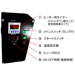 ヒーター用タイマーと温度設定が一体化されたコントロールBOXは、デジタル表示で見やすく操作も簡単に行えます。